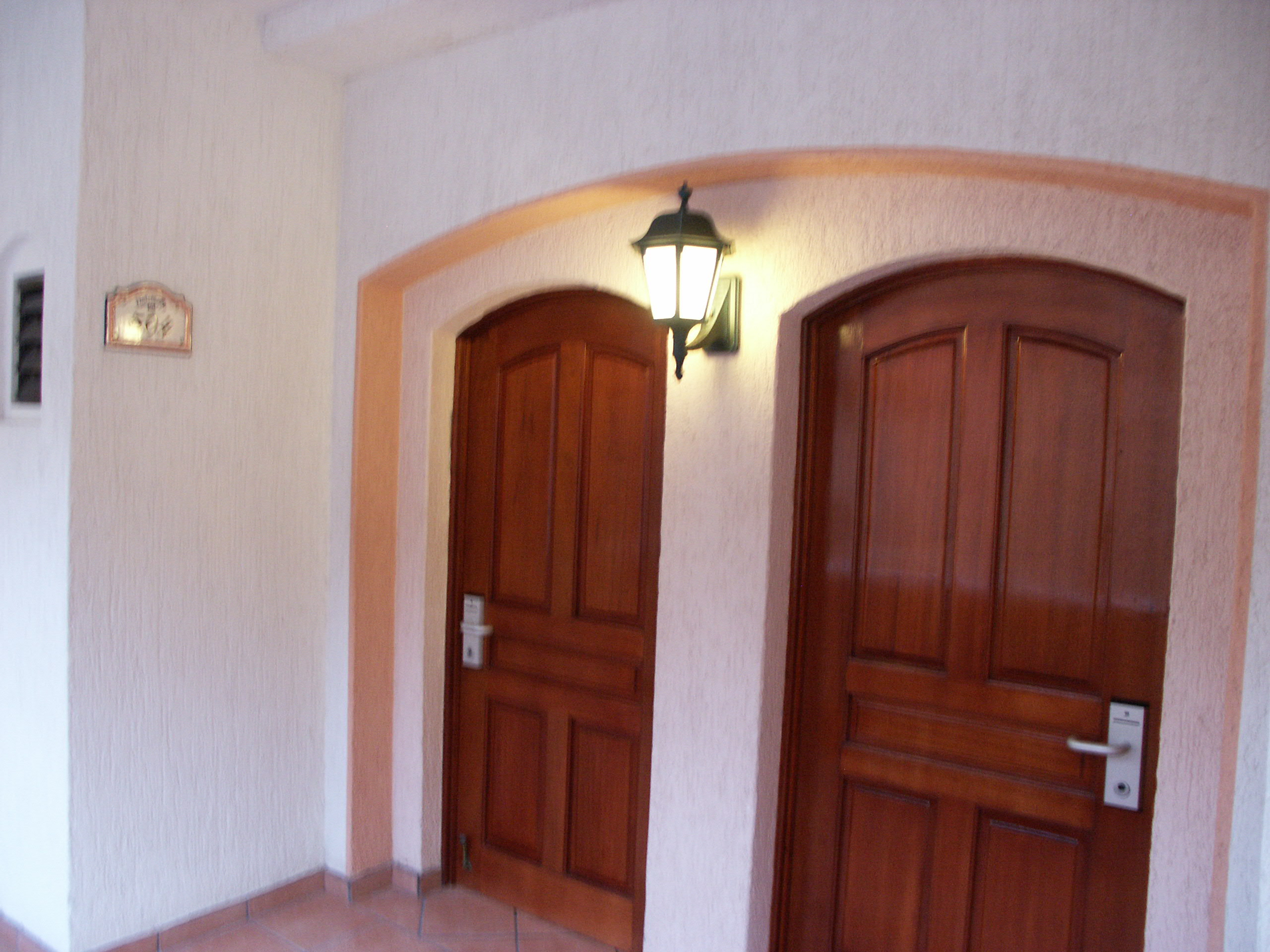 | From the pool area towards the hotel. Or room is up there somewhere on the fifth floor. | The hotel next to ours. | A view right before you go into the hotel. |